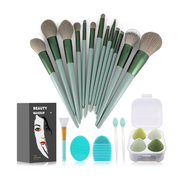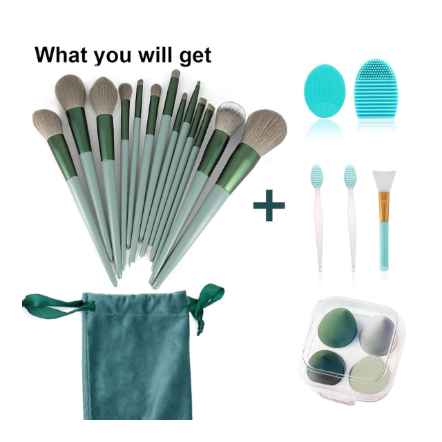This set features 13 high-quality makeup brushes accompanied by a storage bag. Additionally, it includes a silicone face-pack brush, a sponge egg set, two silicone lip brushes, a brush cleaning egg, and a silicone facial cleansing brush. Perfectly curated for beauty lovers, this set offers everything you need in one place.